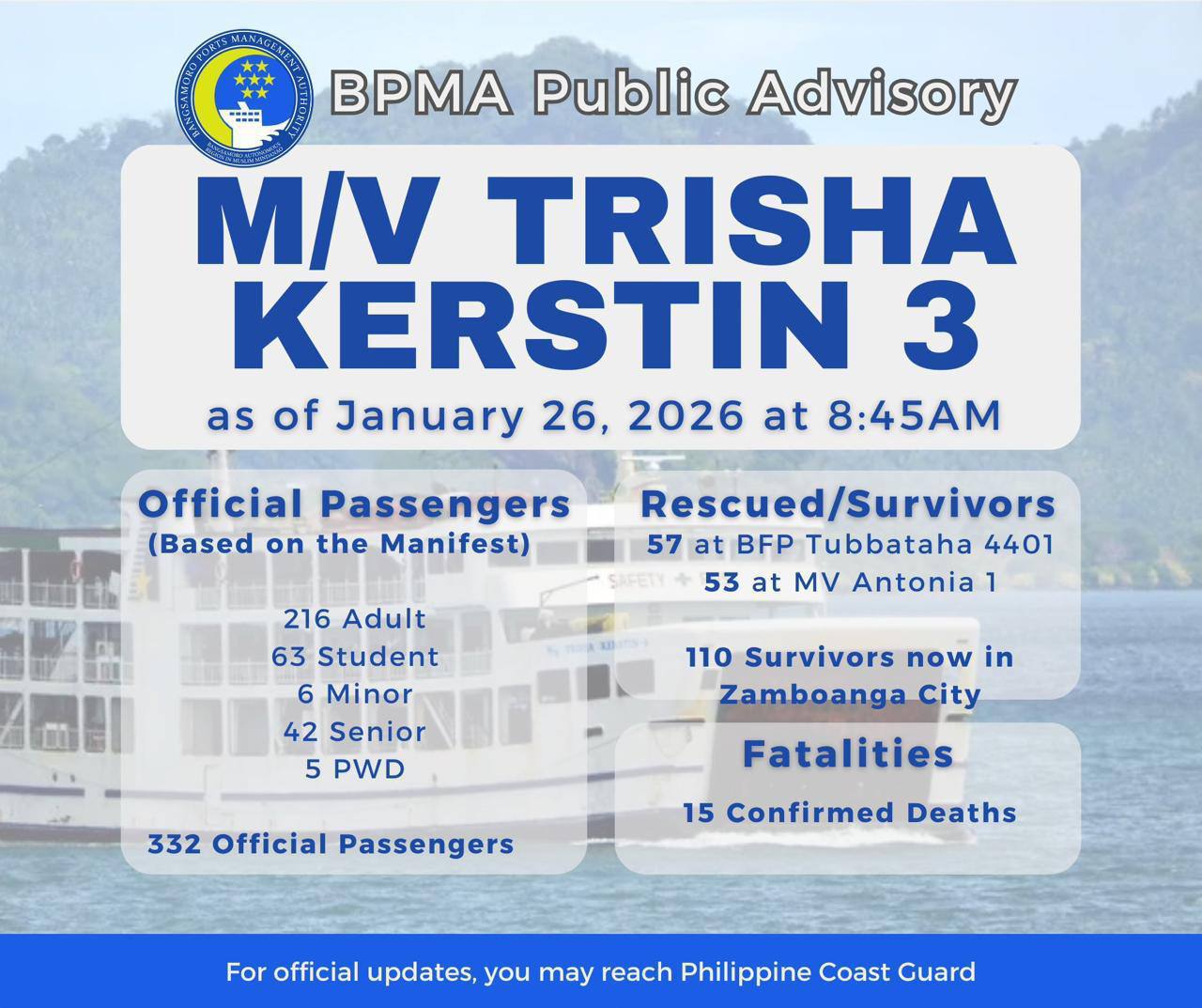 Местные власти и спасательные службы продолжают расследование обстоятельств происшествия. Вопросы безопасности морских перевозок на Филиппинах вновь оказались в центре внимания. На данный момент точные причины крушения уточняются.
