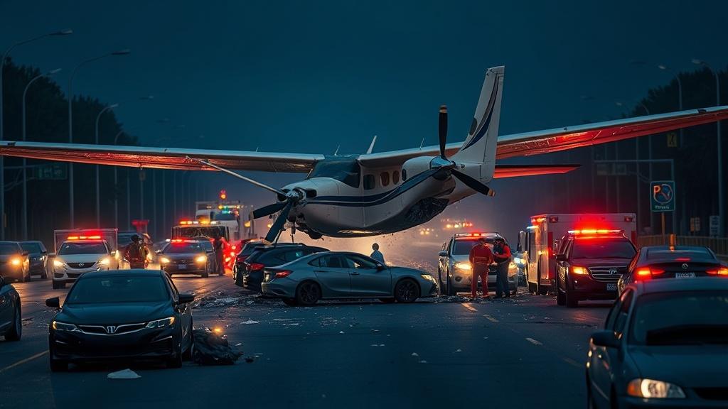 В Гейнсвилле, штат Флорида, легкомоторный самолёт совершил экстренную посадку на оживлённую дорогу, в результате чего пострадали четыре человека.