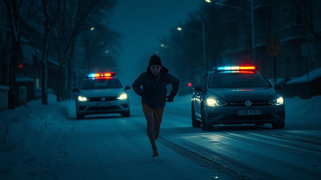 Киров. 17-летний подросток устроил погоню в одних носках, пытаясь скрыться от сотрудников ДПС. Инцидент произошёл в Кирове при температуре около -20°C.