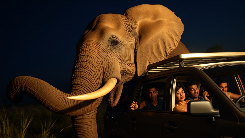 Однако один из слонов проявил агрессию и атаковал их транспортное средство. Животное не успокоилось, пока не повредило дверь автомобиля. По словам очевидцев, ситуация вызвала панику среди пассажиров.