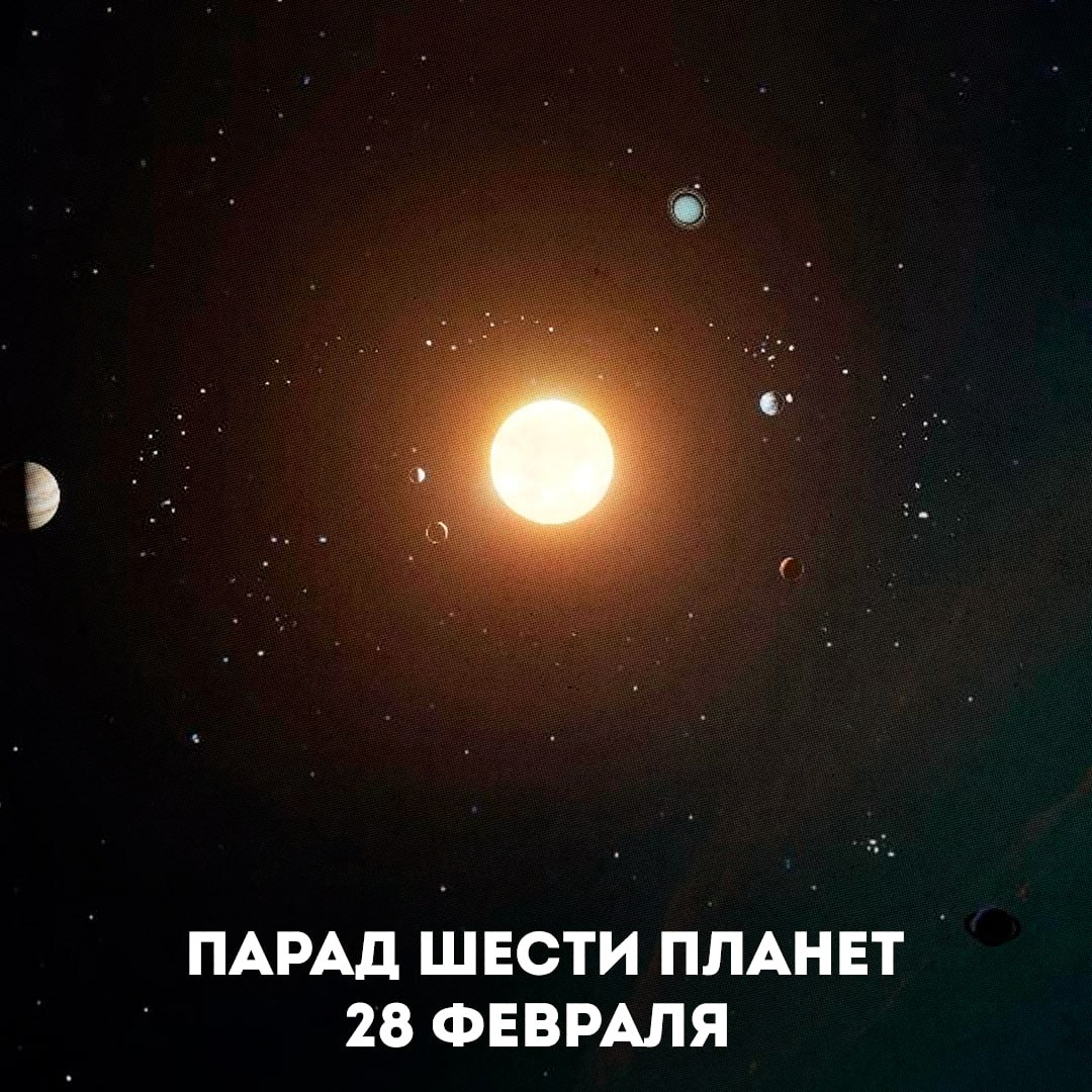 28 февраля: Парад шести планет! Юпитер, Уран, Сатурн, Нептун, Венера и Меркурий выстроятся почти в одну линию. Это будет эпично.