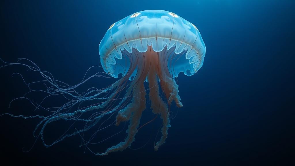 Это лишь 130-е наблюдение этого вида за более чем столетие. Щупальца медузы достигают 10 метров, а тело — более метра в диаметре. Несмотря на внушительные размеры, медуза не жалит: щупальца нужны для ловли рыб и планктона.