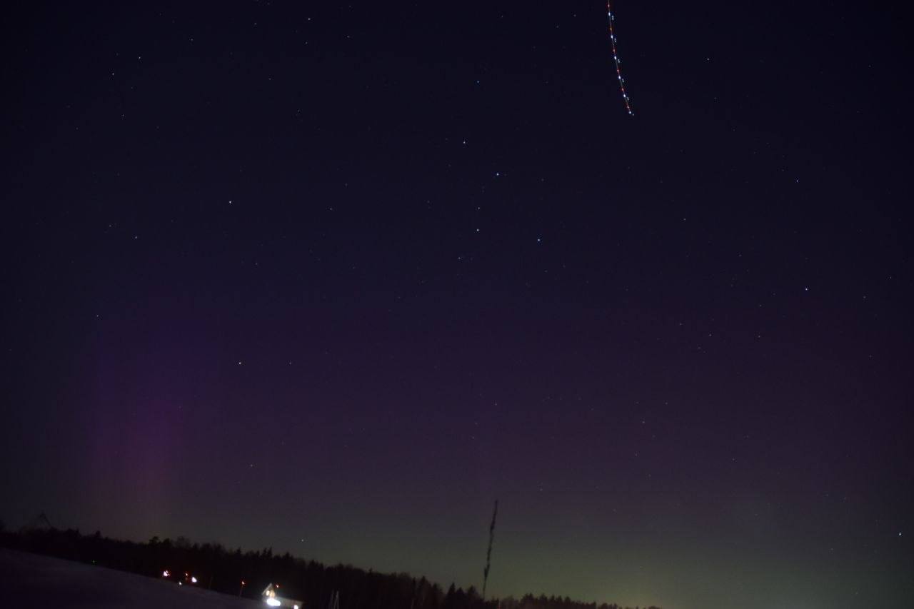 Вот это да! Прямо сейчас, в ночном небе над Москвой и областью разворачивается настоящее чудо природы — северное сияние. Представьте: небо раскрашено в переливающиеся оттенки зелёного, розового и фиолетового. Такое зрелище в наших широтах — редкий гость, а значит, шанс увидеть его своими глазами — настоящий подарок.