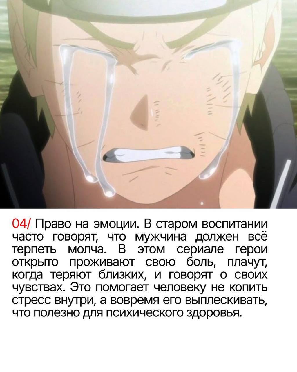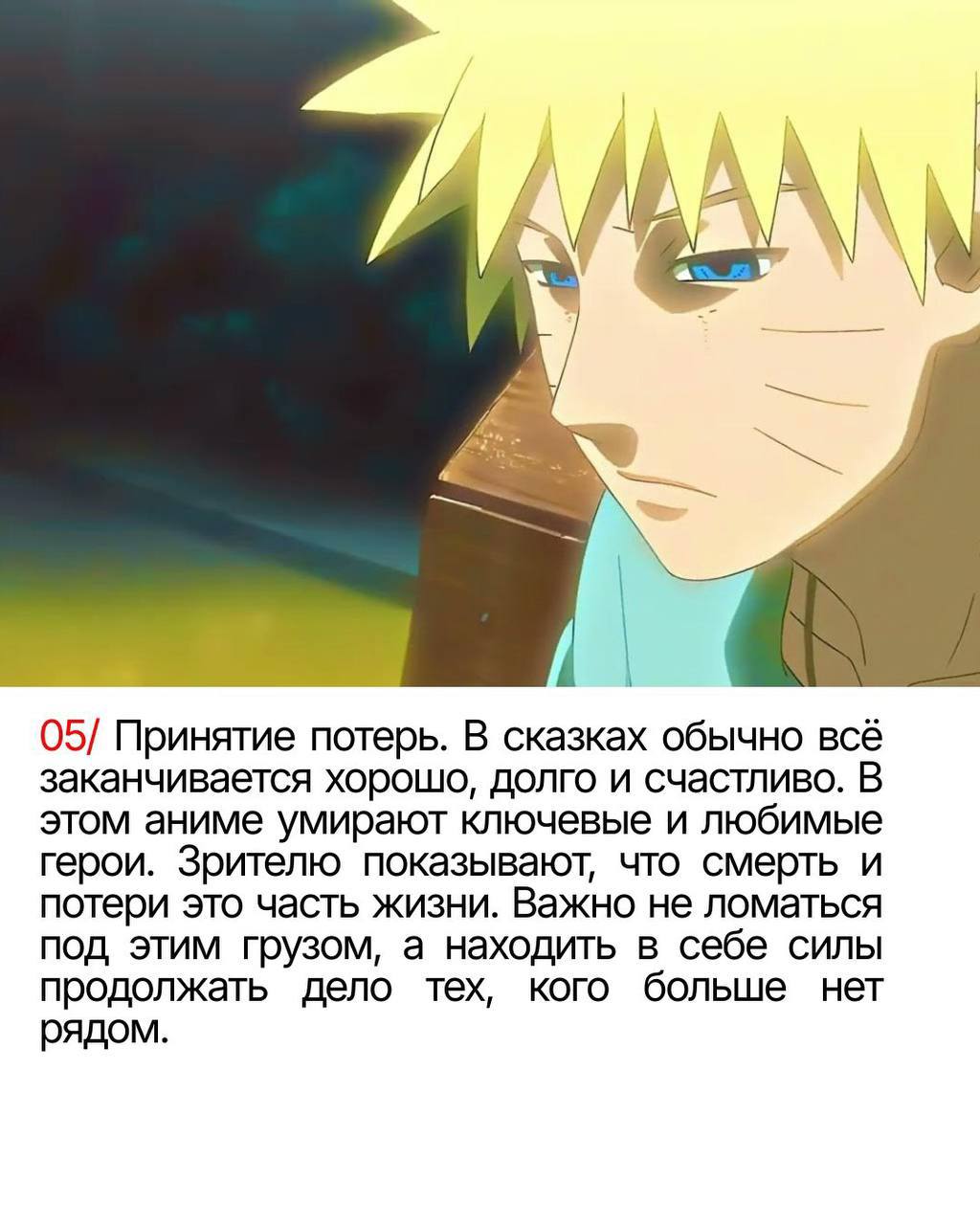 И самое главное: «Наруто» придаёт сил, чтобы не сдаваться после потерь и идти дальше. Это не просто развлечение, это инструмент для сохранения рассудка в сложные времена.