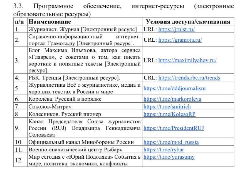 Кстати, ВШЭ также добавила в список рекомендованной литературы ТГ-каналы Минобороны, Подоляки и Соловьёва. Теперь это must-read для будущих журналистов. 📚