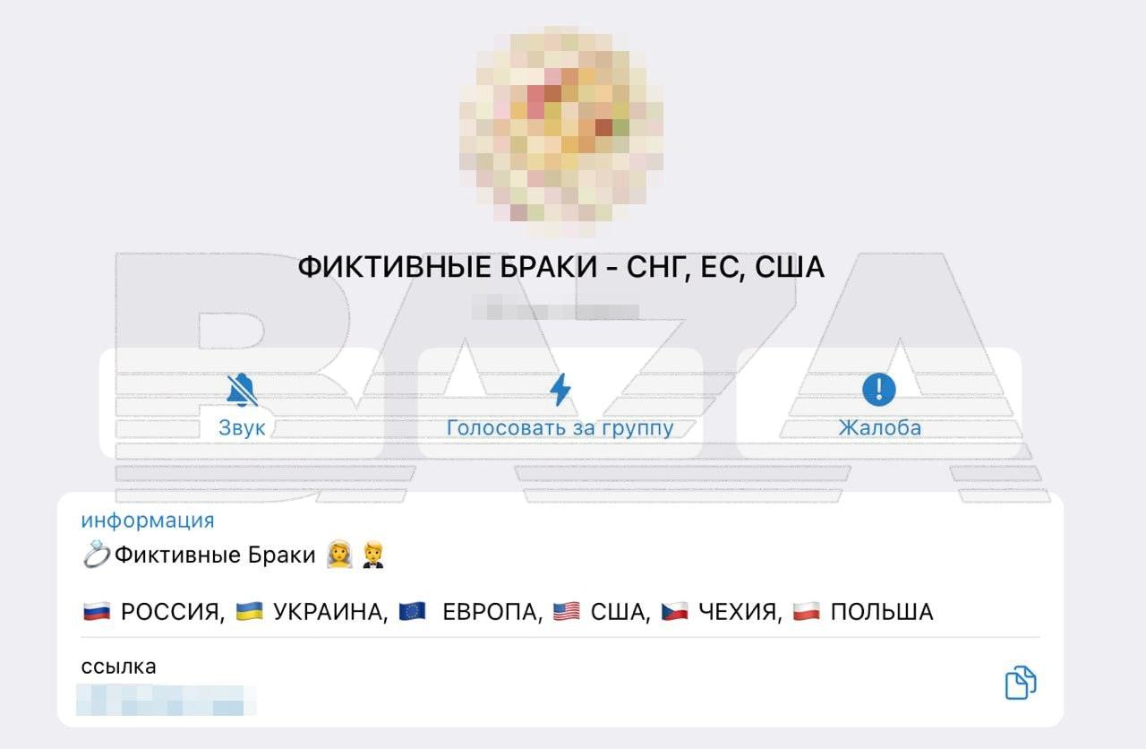 Согласно данным издания «База», в каналах мужчины искали женщин с инвалидностью, чтобы заключить брак за деньги. По российскому законодательству, призывник, ухаживающий за больной женой-инвалидом, имеет право на отсрочку от службы в армии. Кроме того, на этих же площадках предлагались услуги для иностранцев, желающих получить российский паспорт.