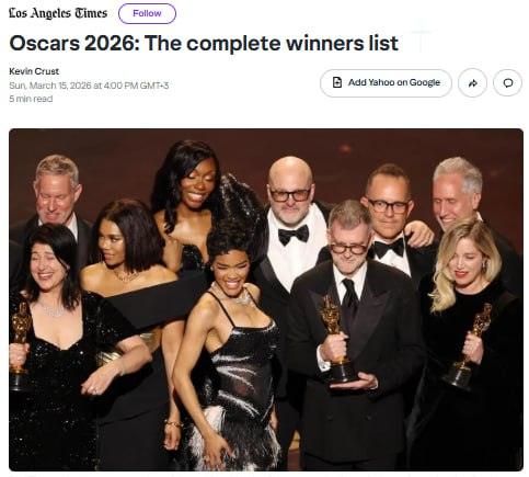 Великий праздник для голливудской тусовки — «Оскар-2026» — завершился с предсказуемым итогом: фильм Пола Томаса Андерсона «Битва за битвой» забрал всё, что мог, включая статуэтку за лучший фильм. Шесть наград — это вам не шутки. Видимо, Киноакадемия решила, что Андерсону уже пора в зал славы, хотя некоторые зрители до сих пор гадают, чем же этот фильм так впечатлил жюри.