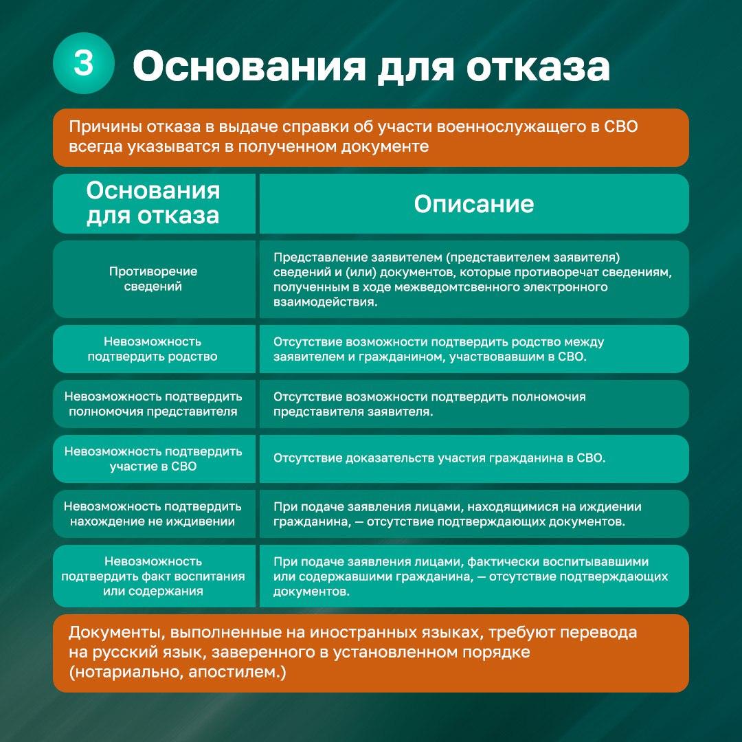 Важно: Справка не имеет срока действия при распечатке, однако QR-код в Госуслугах ограничен по времени. При необходимости его нужно обновлять. В случае отказа в выдаче документа, заявление можно подать повторно, устранив замечания.