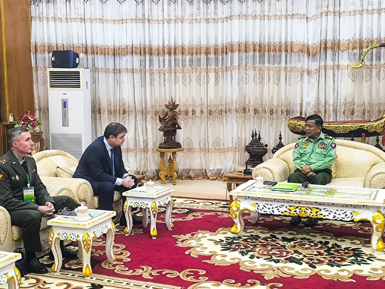 В столице Мьянмы Нейпьидо прошла встреча заместителя Министра обороны Российской Федерации Василия Осьмакова с Министром обороны Мьянмы генералом Маунг Маунг Эйем. На мероприятии стороны обсудили текущее состояние и перспективы развития взаимодействия в военной сфере.